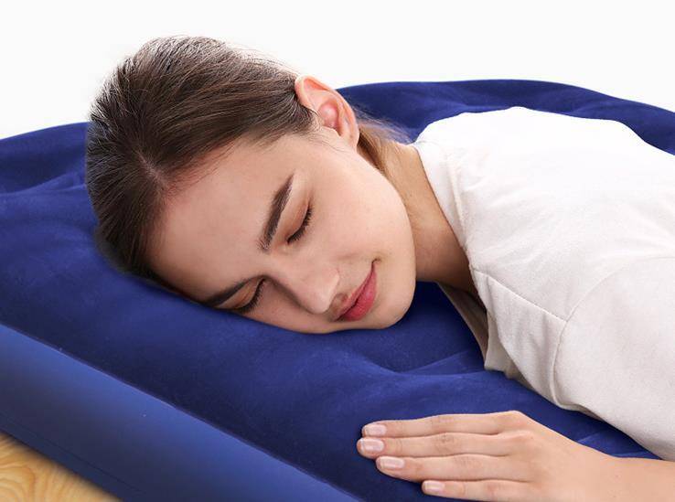 充气床垫设计比充气床垫高,也更舒适。本店这款在线床垫的另一面采用舒适的植绒面料,底层面料为耐磨防潮PVC。下面的材料是轻质和隔热的。.此外,这款气垫还能吸湿透气,贴合人体曲线。