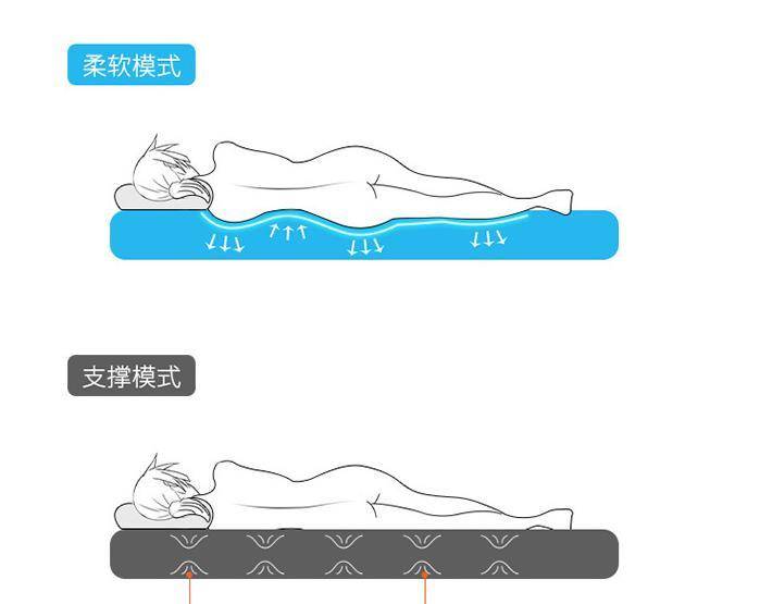 床垫采用蜂窝支撑点(56个全方位支撑气柱)支撑,受压均匀,适应各种睡姿。而且充气床可以根据充气量的不同来调节床垫的软硬,以满足不同人的睡眠需求。