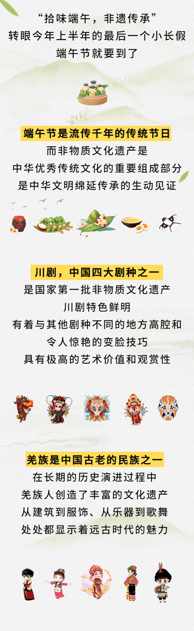 这个端午,来九皇山参加羌族传统婚礼、参加萨朗晚会,沉浸式了解羌族婚礼、羌笛、口弦、推杆、羌绣、羊皮鼓舞等非遗文化,一起做文化遗产传承人!