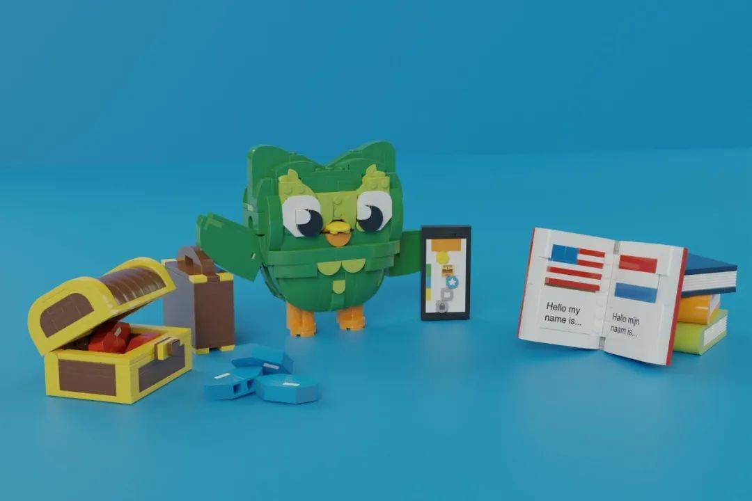 Duolingo是Legobricks Bricks最新的MOC作品。Duolingo是一个免费的语言应用,在这里你可以自己学习阅读各种语言,包括法语、英语、西班牙语、等等。猫头鹰Duolingo是你的数字朋友,它将与你一起学习新的语言。它的叶子眉毛和盘子嘴巴让人印象深刻,宝石箱和微型屏幕告诉我们这是一个充满知识宝藏的App。