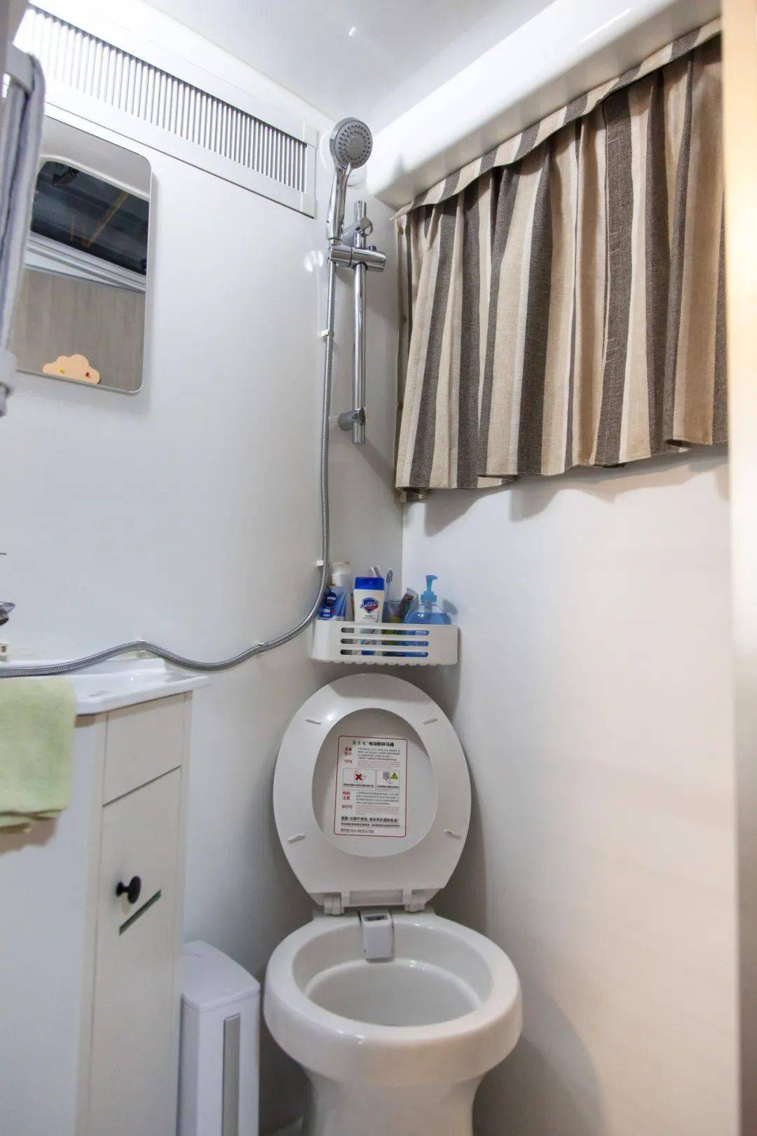 尾部卫生间配备有电动粉碎马桶、浴室柜、冷热花洒水龙头、浴室镜、换气扇、毛巾架等,提供了方便的洗漱和淋浴服务。水路系统方面,本车配备了200L超大净水箱(标配75L)+自来水快接+紧急注水泵,加水非常方便。电路系统方面,配备了24V 170Ah磷酸铁锂电池+900W太阳能发电板+5000W正弦波逆变器,提供了充足的电力,满足车内各类电器的使用需求。此外,房车还配备了24L石油液化气罐/高原柴油炉,方便用户在车内进行燃气烹饪、热水、取暖等。