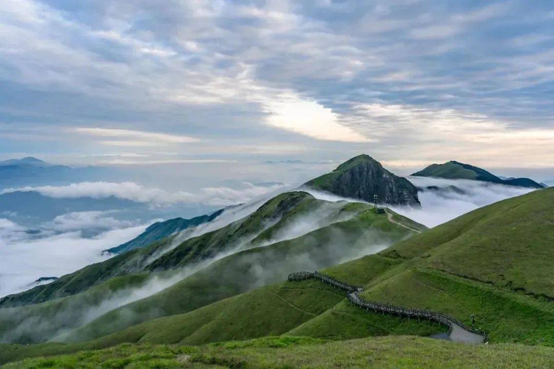 武功山还着力推动旅游与户外文化、体育、康养的融合发展,推出经典山水游、康养度假游、户外休闲游、红色生态研学游等多条精品线路。如今“一核心、多节点”的景区环线已成功打造,风貌亮化、绿化、美化成效也已显现,景区面貌大为改观。