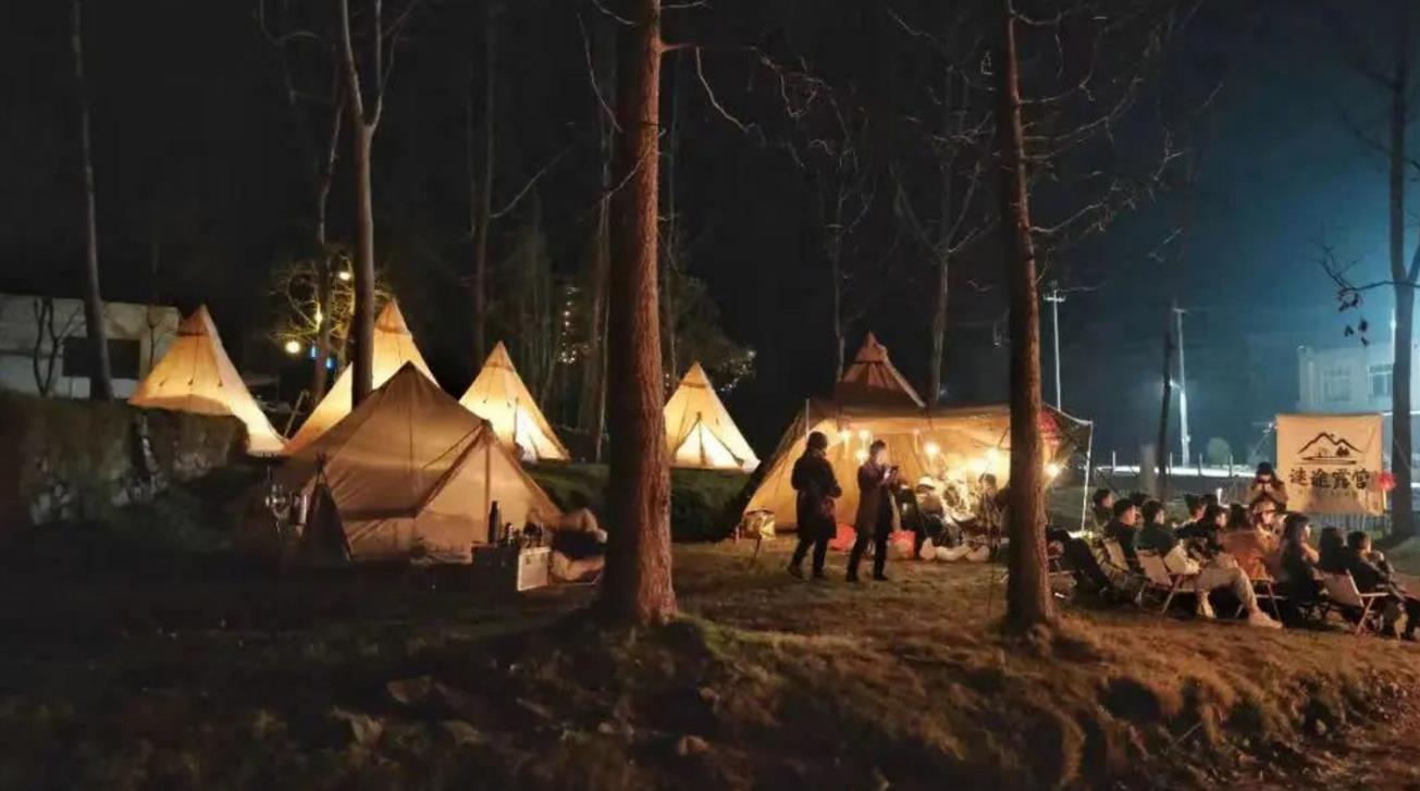 如果人多,有些朋友会在晚上打开帐篷的小灯,浪漫又温馨。这里的过夜帐篷50元一顶,停车费10元。直接导航春芽村就可以到达。从成都出发大约需要两个小时。