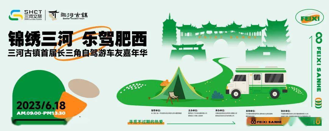 6月18日上午9:00, 合肥市肥西县三河古镇景区-游客接待中心将举行一场以“锦绣三河 乐驾肥西”为主题的三河古镇首届长三角自驾游车友嘉年华活动,届时将有来自全国各地的房车自驾游厂商、房车爱好者在这里集结,共同开启这一场文旅融合/趣味十足的自驾游之行。