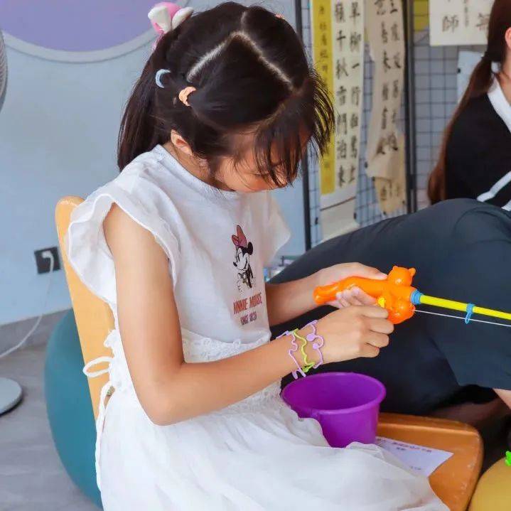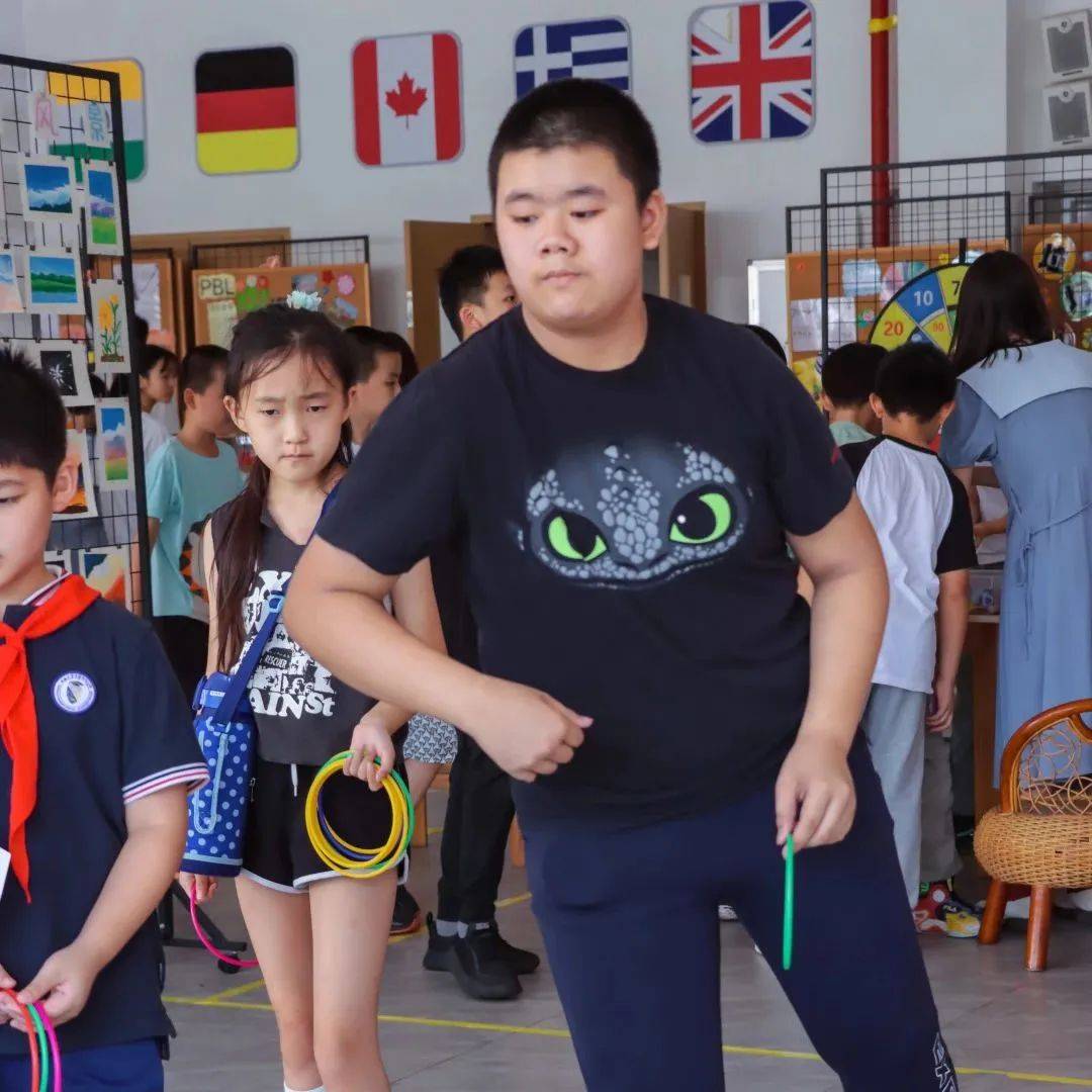 六一游园活动中,老师们设计了眼明手快(夹玻璃球)、气吞山河(吹蜡烛)、袖里乾坤(套圈圈)等游戏,孩子们凭“鸿鹄币”到各个关卡依次打卡挑战,挑战成功后获得兑奖券,兑换奖品。