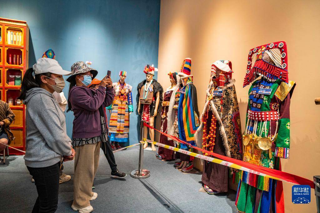 几名游客在拍摄西藏各地特色服装(6月17日摄)。