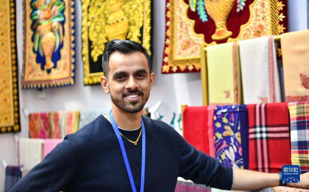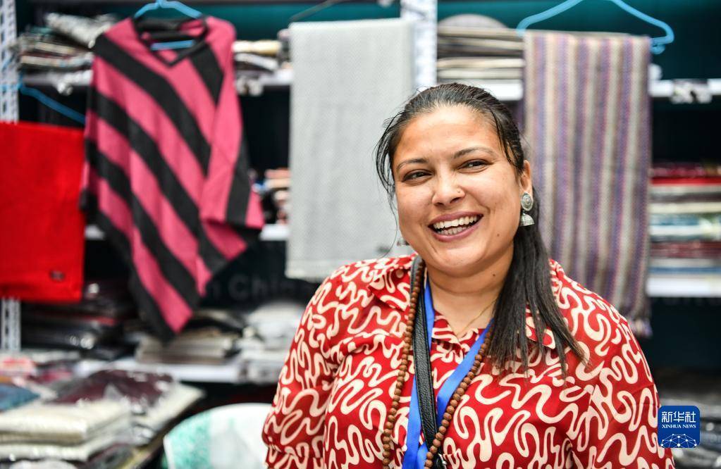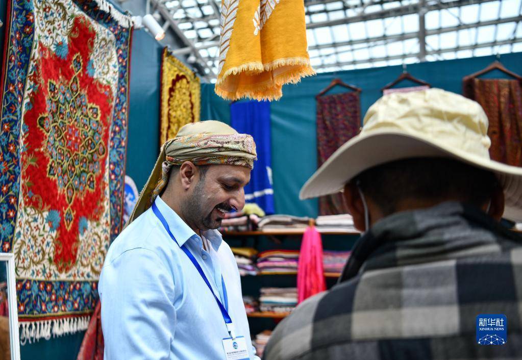 这是展会上的尼泊尔商人(6月18日摄)。