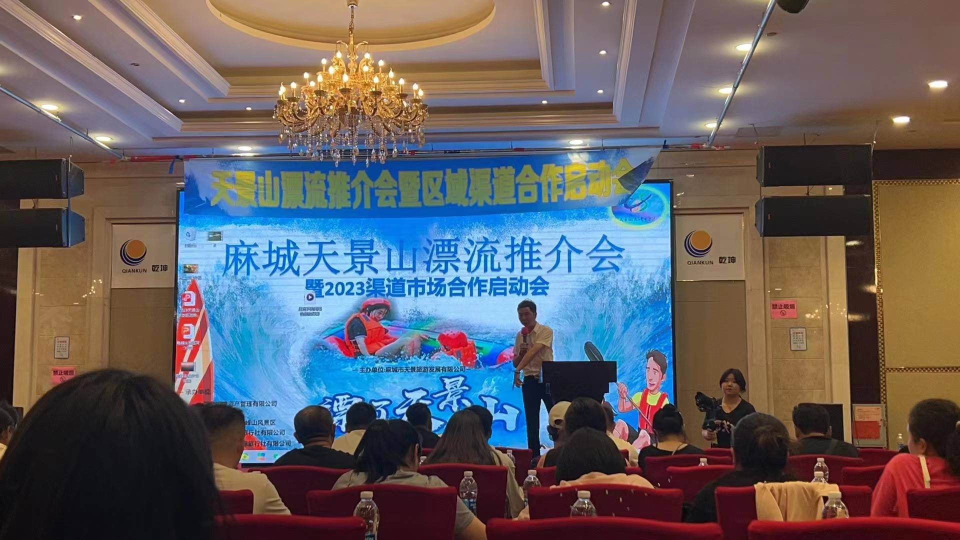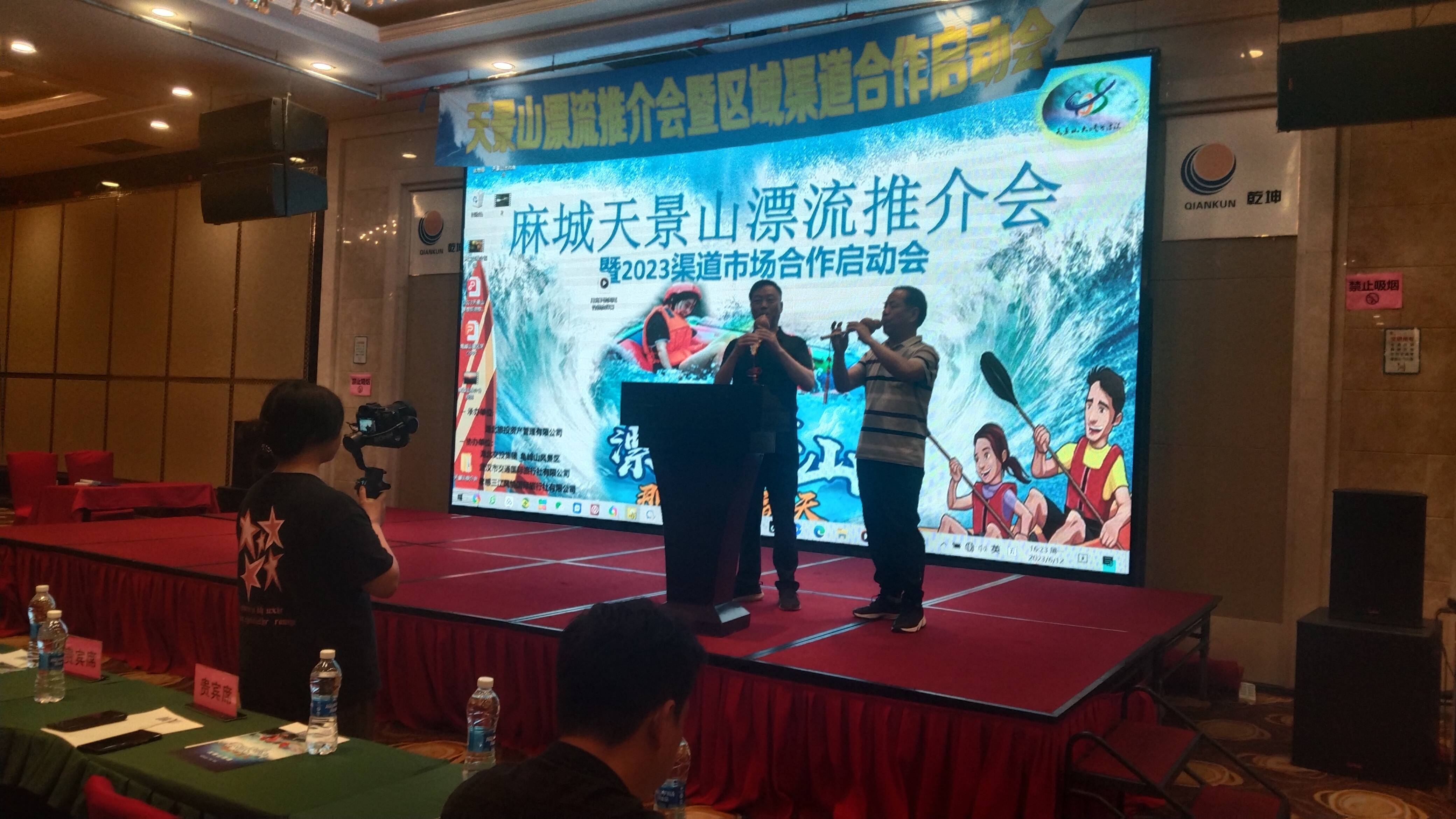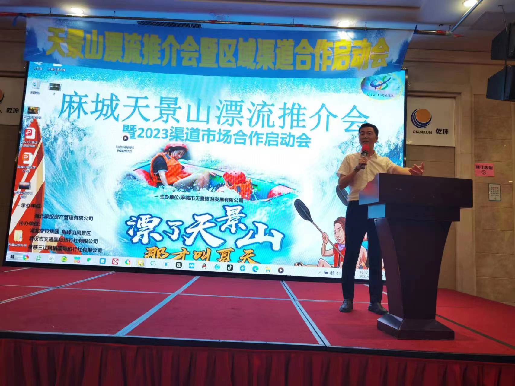 (士雄 云游 )2023年6月12日下午,位于中国漂流谷的黄冈麻城天景山漂流推介会暨2023孝感旅行社合作启动会在孝感会议中心隆重举办。麻城天景山漂流景区向与会嘉宾做了精彩分享。