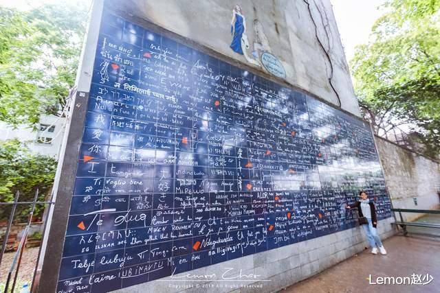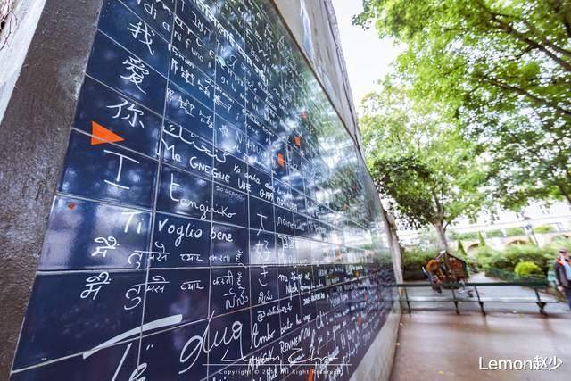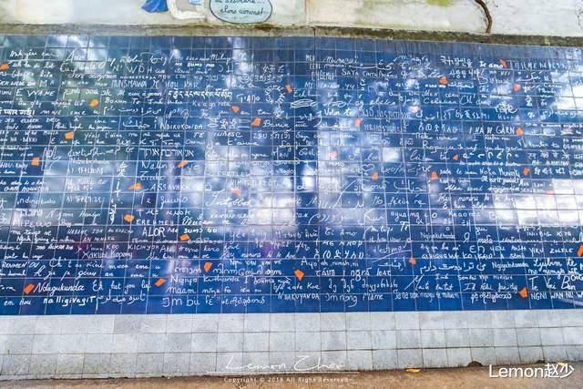 巴黎的爱情墙应该算是巴黎非常热门的景点了。有些游客可能不太了解这个风景如画的地方。其实也是一个热门景点。很多人来巴黎,都会来这里。在一个小公园里找到一堵爱的墙。这是一面深蓝色的墙,整面墙面积约40平方米,主要由深蓝色的瓷砖组成,有上百种字体,上百种语言写着我的爱。那三个字。