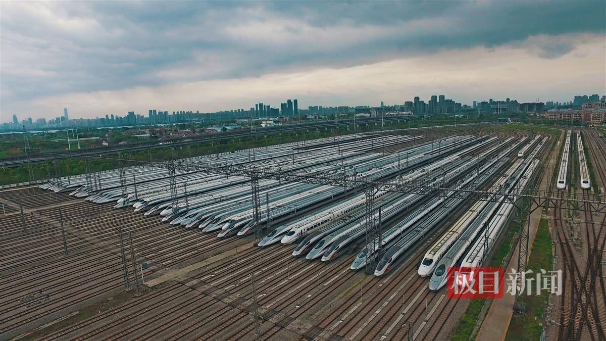 动车组列车在武汉动车段整备场集结(王琪 摄)