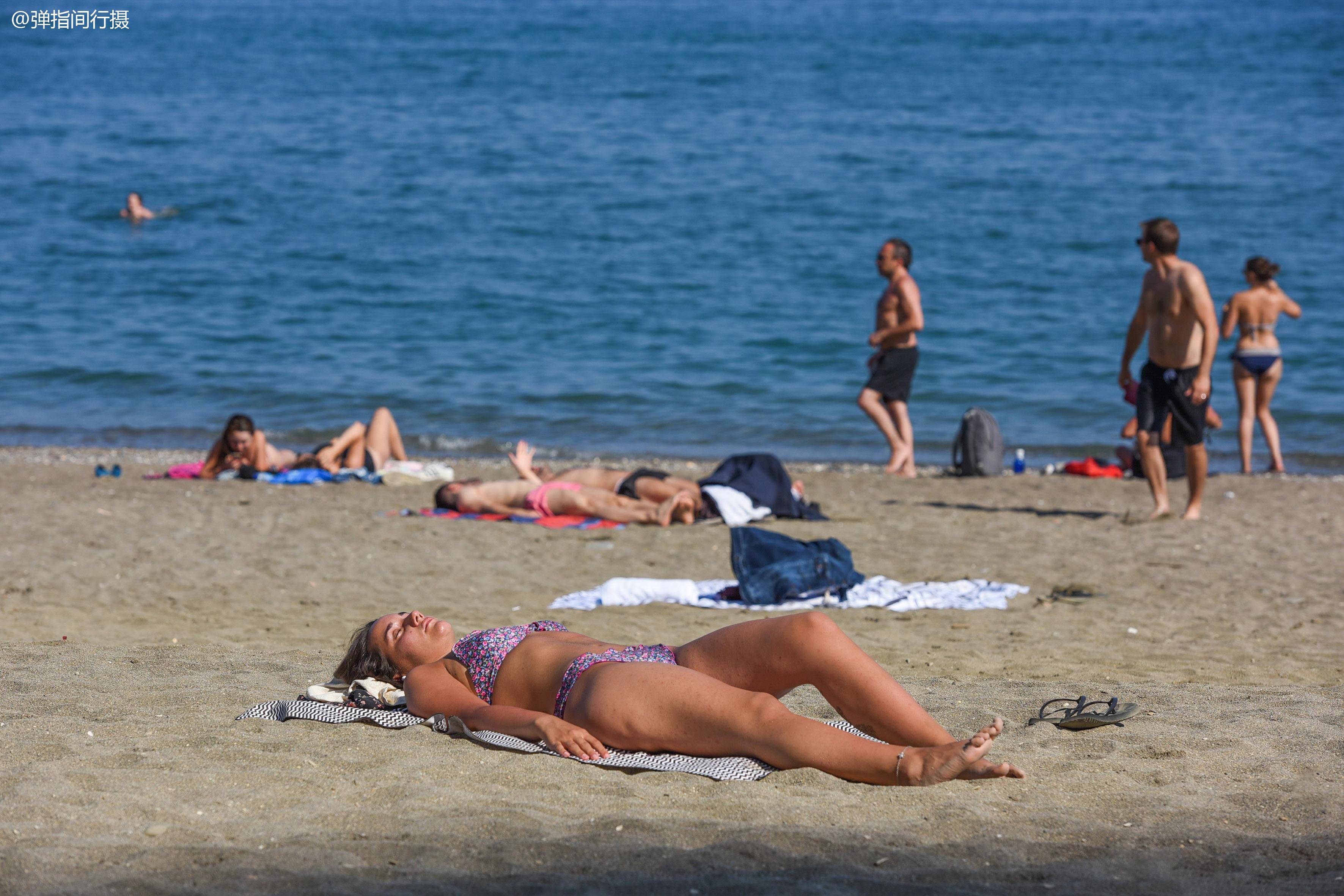 狭长的海滩竖着数不尽的稻草太阳伞,为度假的租客选用。夏日里的马拉格塔海滩,中午气温高达40度,皎阳将海滩烤得滚烫,海风也夹杂着热浪,但在热潮涌动的海岸,对于喜爱“美黑”的西班牙女郎来说,是享受阳光的绝好时间。湛蓝的海水、平整的沙滩,满眼的比基尼,香艳迷乱。