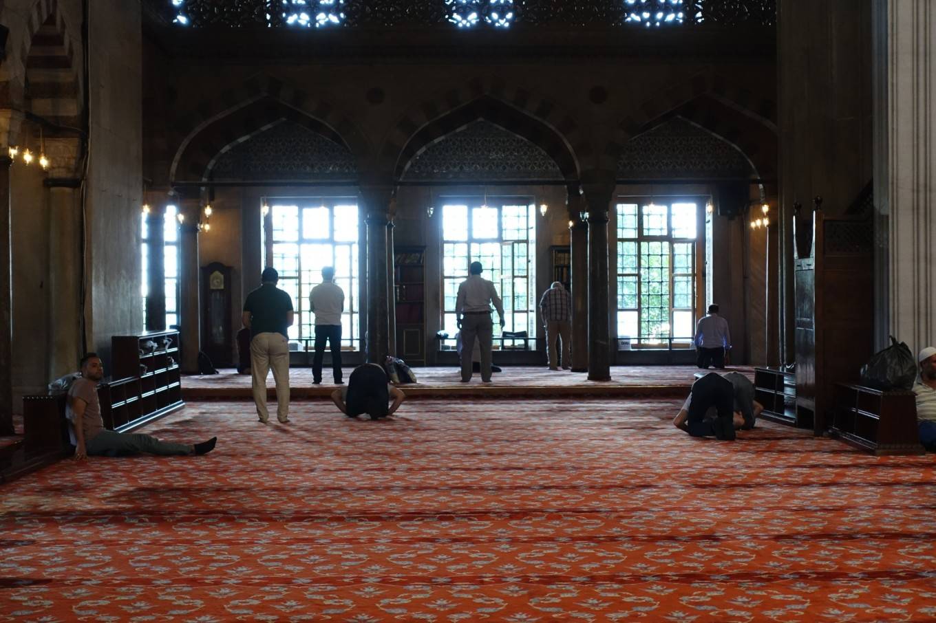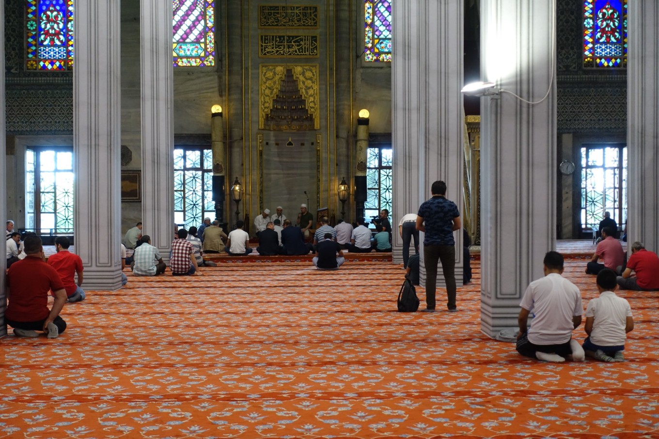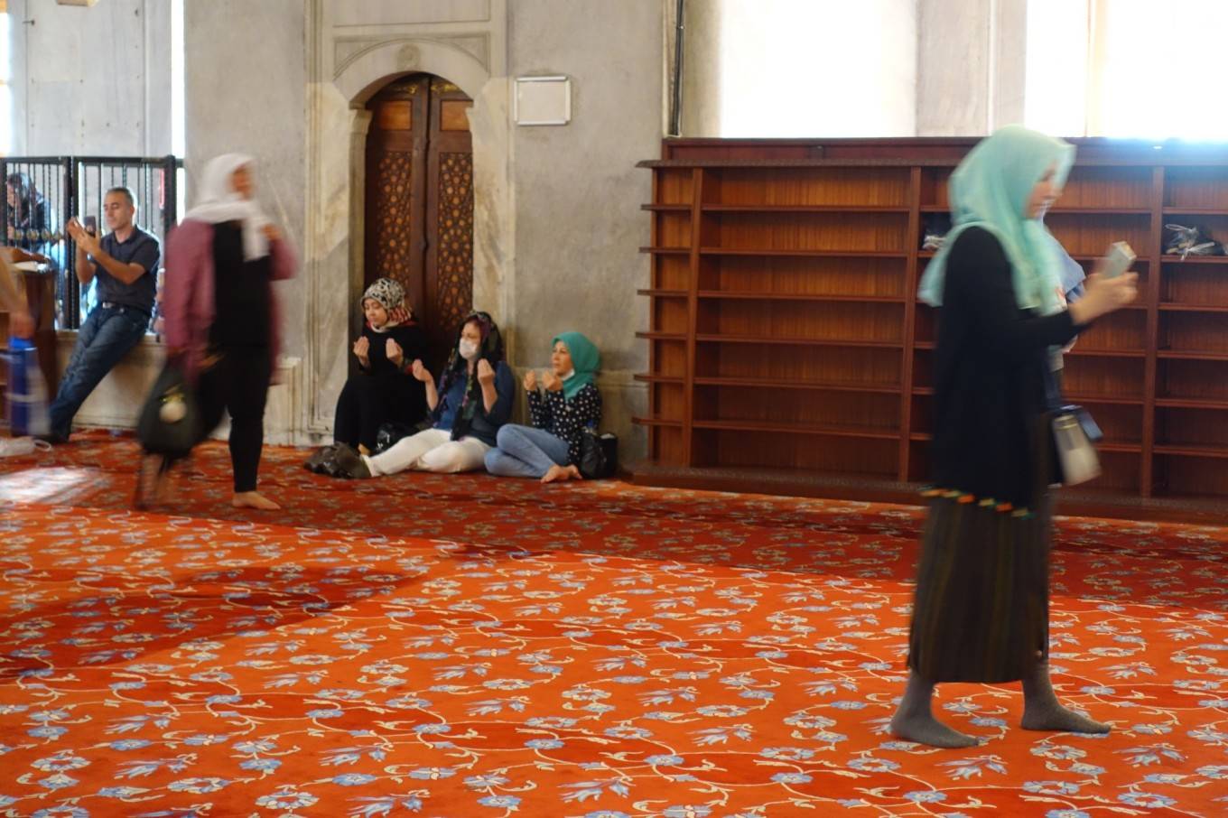 入内需要拖鞋,正中间的阿訇们当时正在宣讲吧。