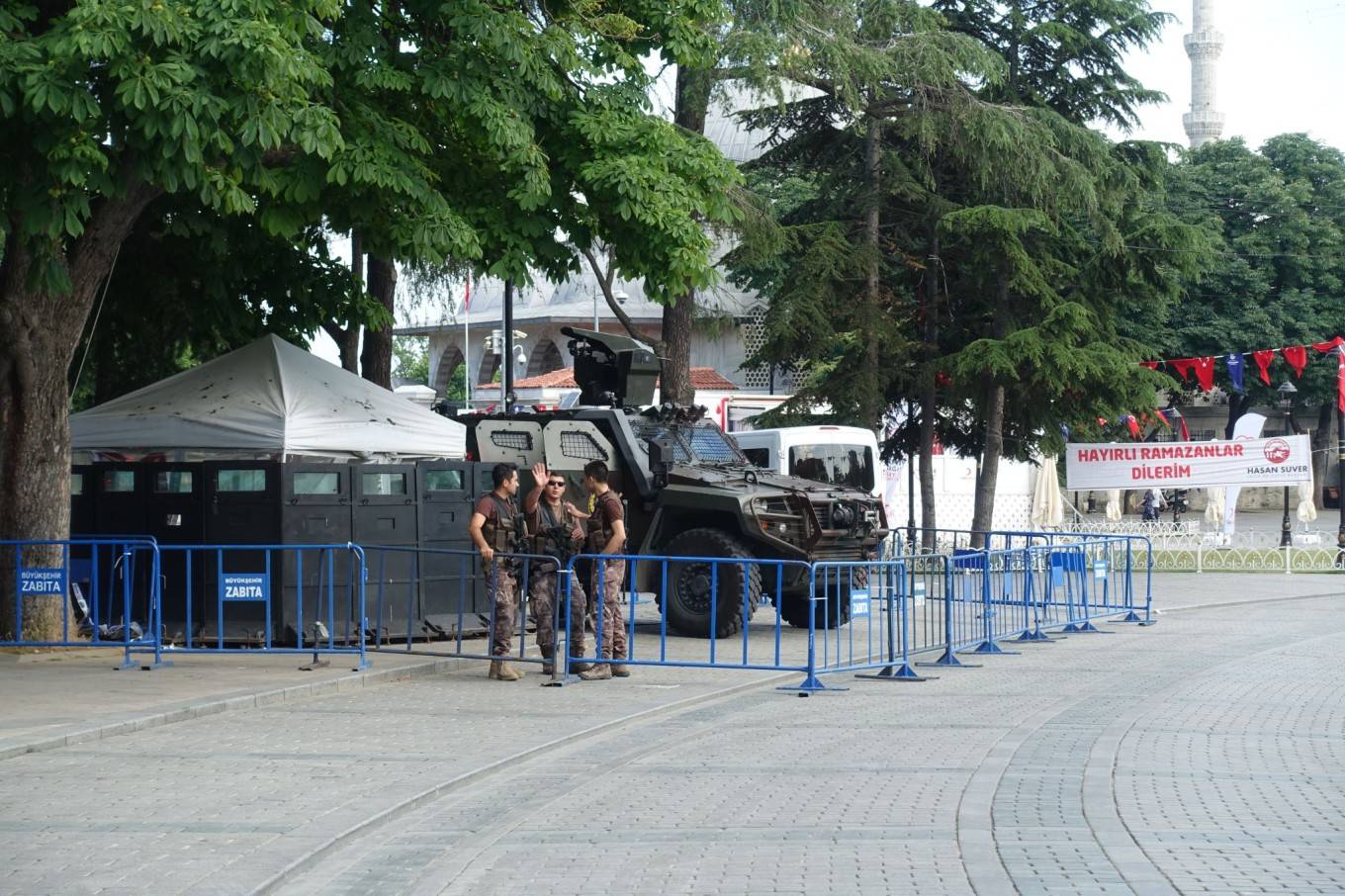 清真寺外围的街道,遇到俩带着点武装的小哥。