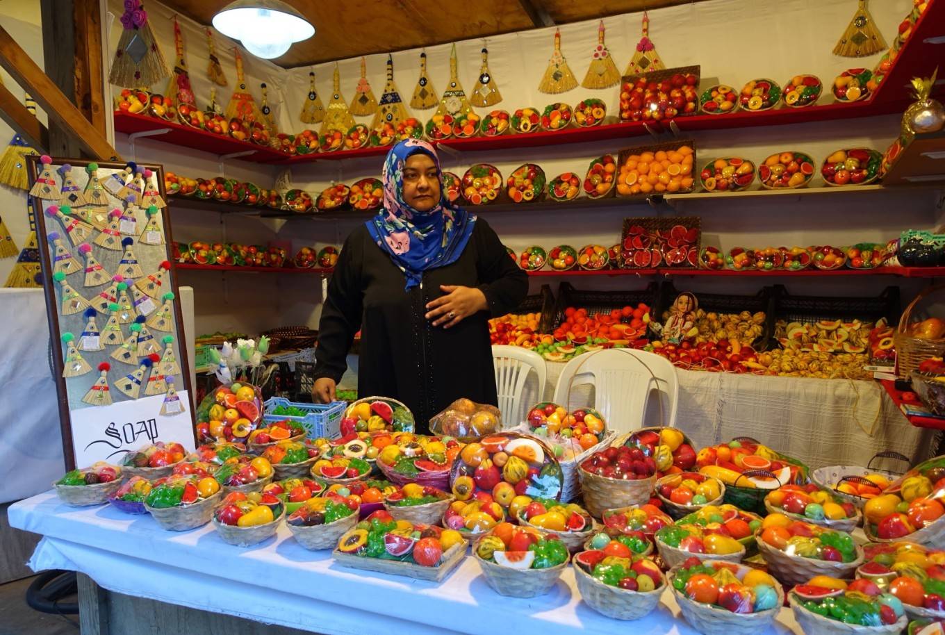 游客步行街的两边都是小铺子,各家摆摊自己的东西。