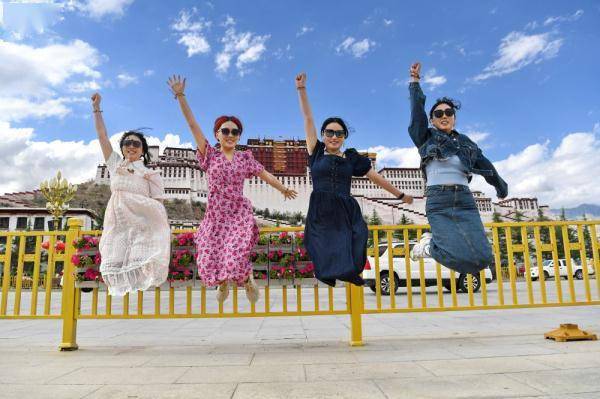 游客在拉萨布达拉宫广场上合影留念(6月15日摄)。新华社记者 张汝峰 摄