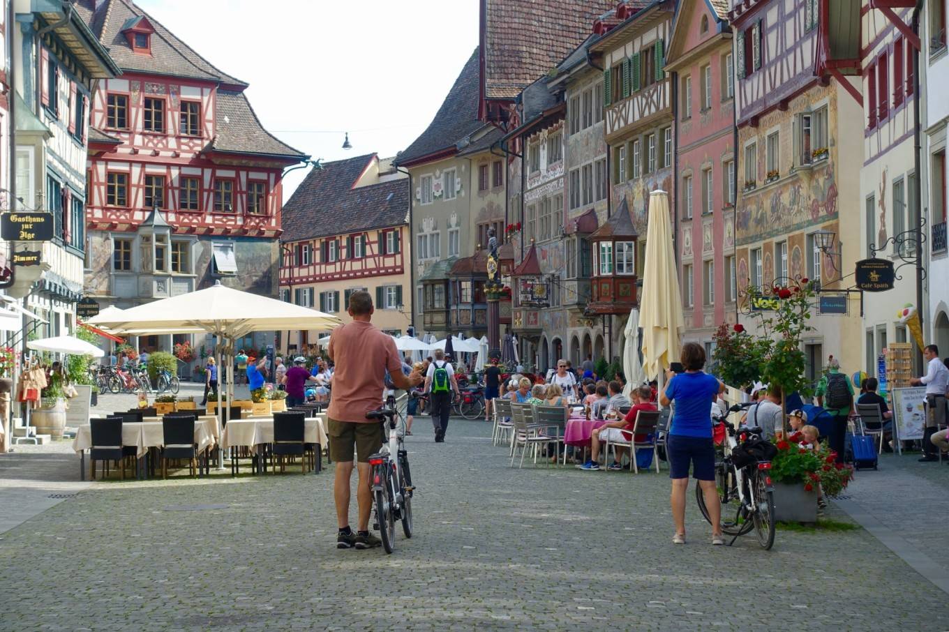 小镇施泰因位于博登湖与莱茵河的交汇处,因保存完好、富有古镇特色的壁画以及半木结构的房屋而著名。这种半木结构的房屋还为施泰因获得了第一个华克(Wakker)建筑奖。