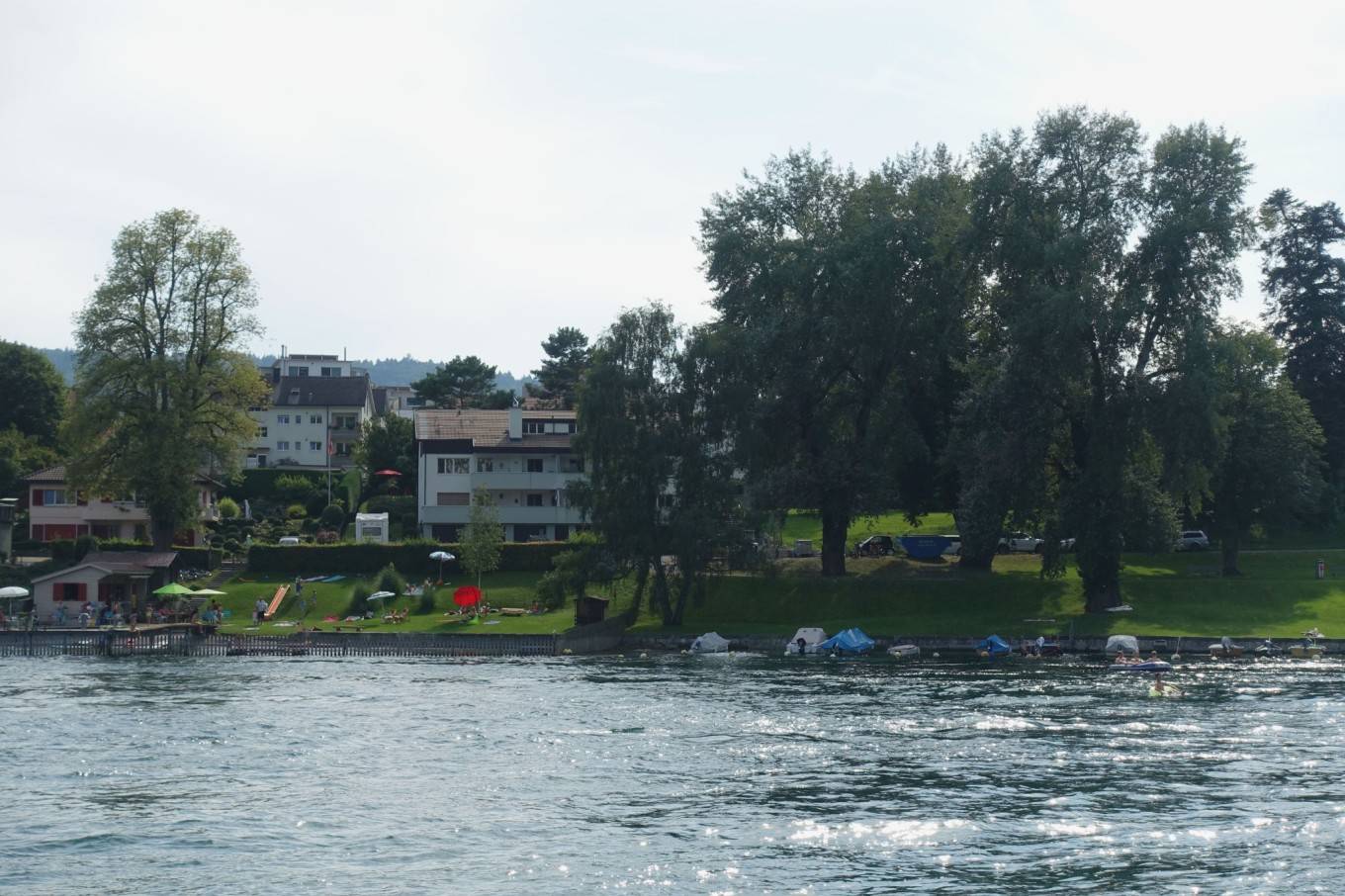 河边有居民晒 日光 浴。