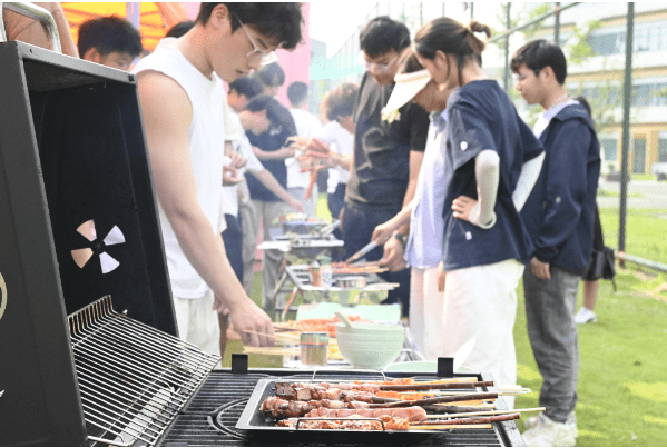 随着夜幕降临,露营基地的户外烧烤闪亮登台,师生们围炉而坐,在烧烤台生起炭火,一起烧烤,乐享夏日!