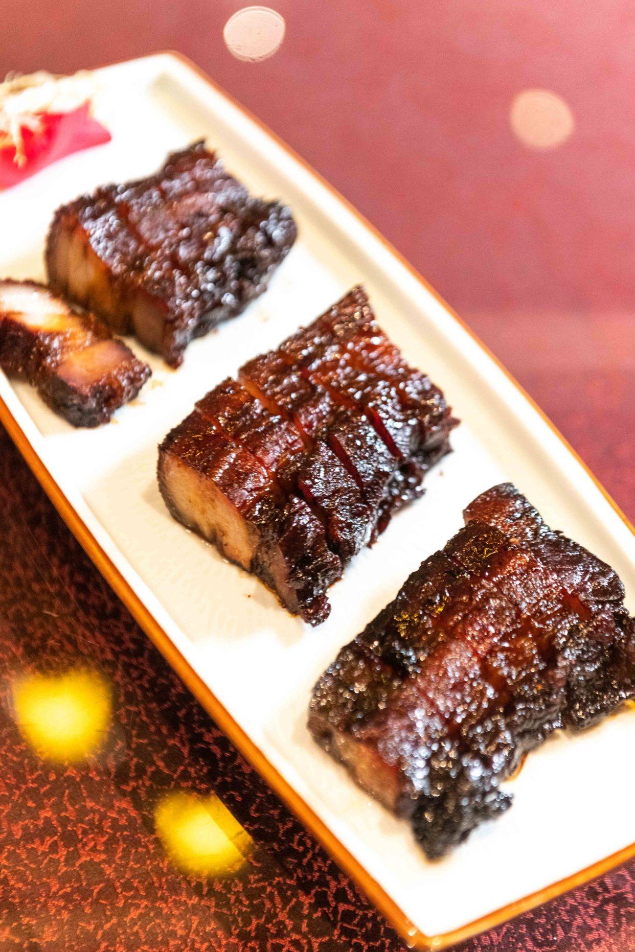 金枕罗衣:这道菜选用精选的猪肉,经过独特的烹饪技法制作而成。金枕罗衣的猪肉鲜嫩多汁,咬下去带来的肉质口感令人陶醉。而精心的烹饪技巧使菜品表面形成香脆的外皮,给予嚼劲十足的口感享受。每一口金枕罗衣,肉质的鲜美和外皮的脆爽完美融合,金枕罗衣的特色还体现在配料和调味料的独特搭配上。菜品搭配了金枕香料,使其更加美味可口。