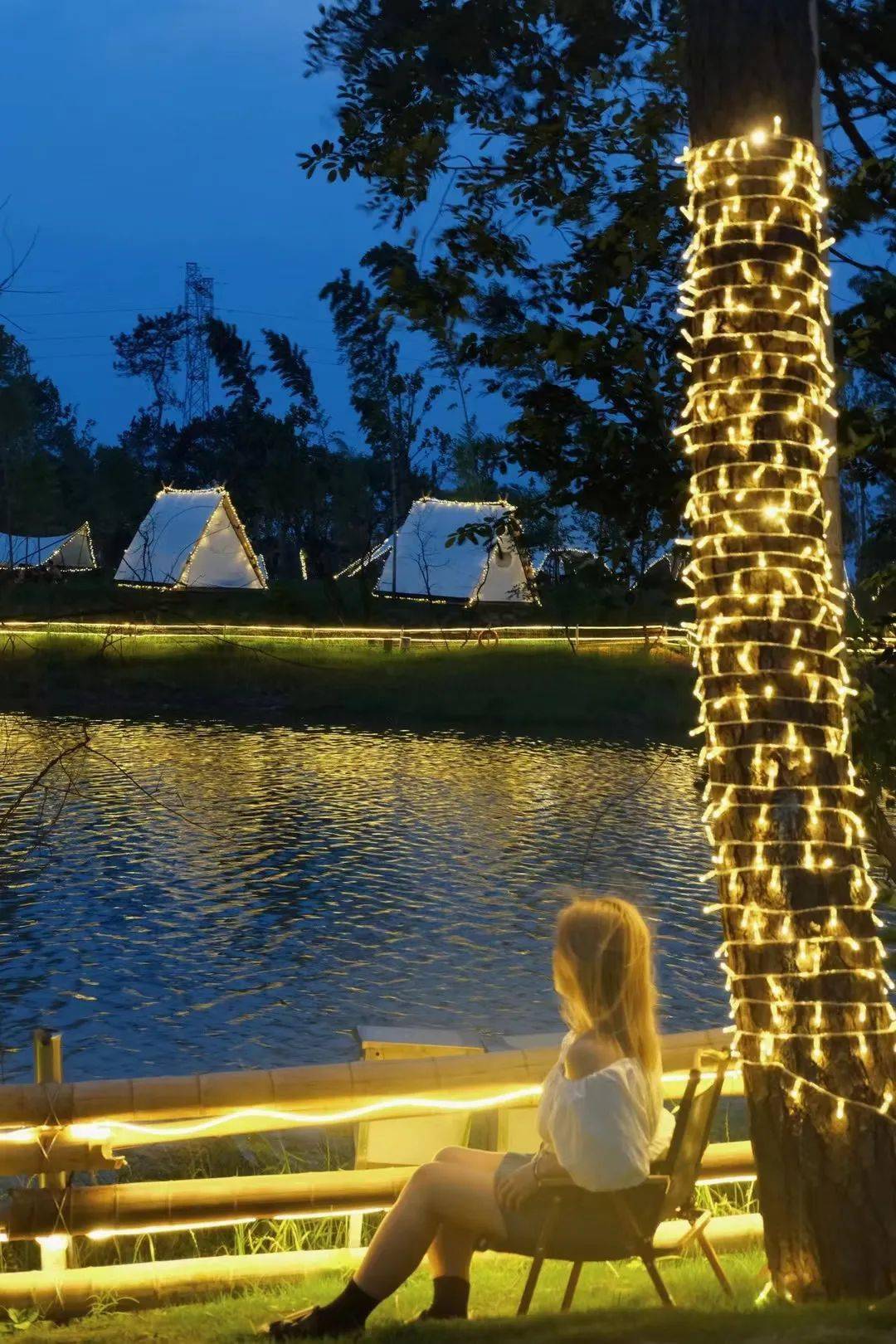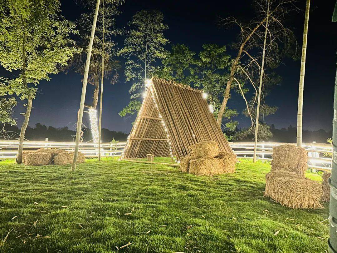 夜幕降临营地氛围灯光开启仿佛置身童话世界,营区内的氛围灯与营地周围的自然风光相互映衬 营造出一种轻松浪漫的氛围 给夜晚增添了几分神秘色彩。