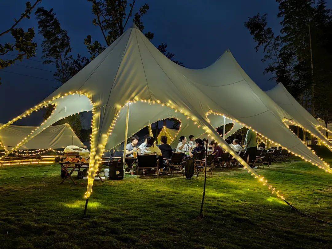 营地还有适合大规模团建的巨型天幕,一次可容纳40人的超大场地。而且营地还提供K歌设备的租用服务!是公司团建,社团聚会的不二选择。快快让我们一起动次打次嗨起来!