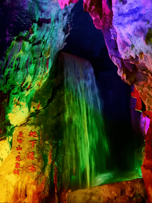 在龙泉洞内,除了有奇形怪状的岩石立柱外,还有地下瀑布,就像地球的心脏,大大小小的瀑布缠绕交织,让人在水声回荡中感受山洞的气势磅礴。