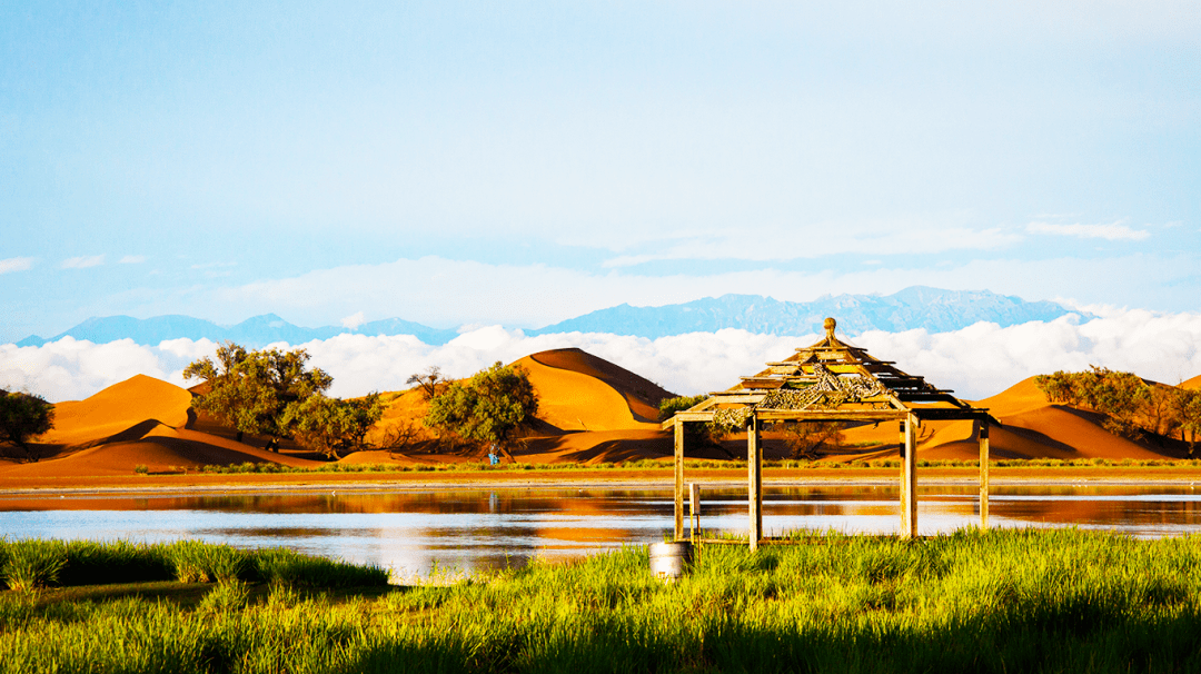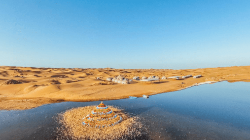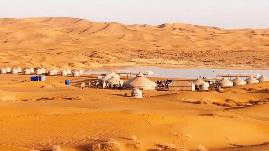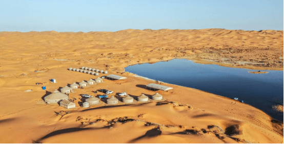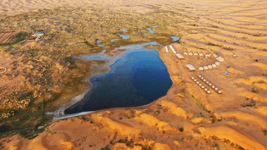腾格里沙漠有多达422个时令湖,是我国湖泊分布最多的沙漠。而此次我们将到达沙漠馈赠的完美栖息地- 北纬38度小众野奢沙漠营地。占地5000亩,沙漠深处有绿洲,湖泊,错落的轻奢帐篷。