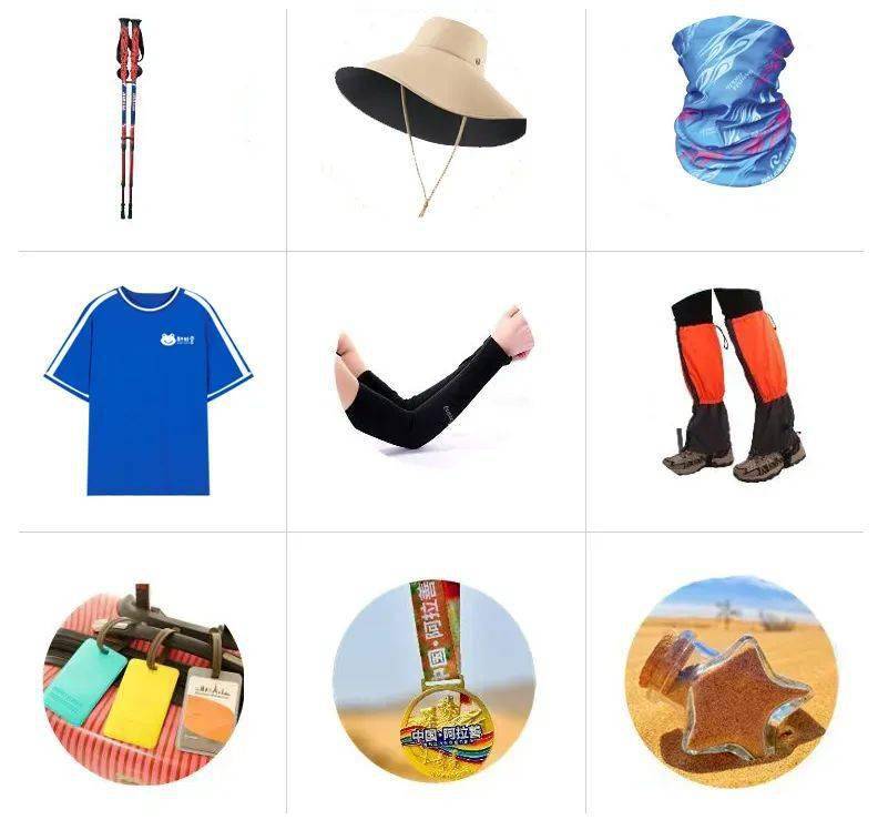 5.沙漠 专属魔术头巾 速干T恤 沙套 大漠纪念沙瓶 专属奖牌 冰袖 证书 奖牌等