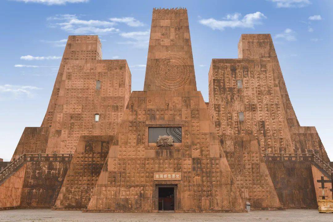 登上九重宫殿 外观气势宏伟 外墙上雕刻着彝文 古朴厚重的文化气息扑面而来
