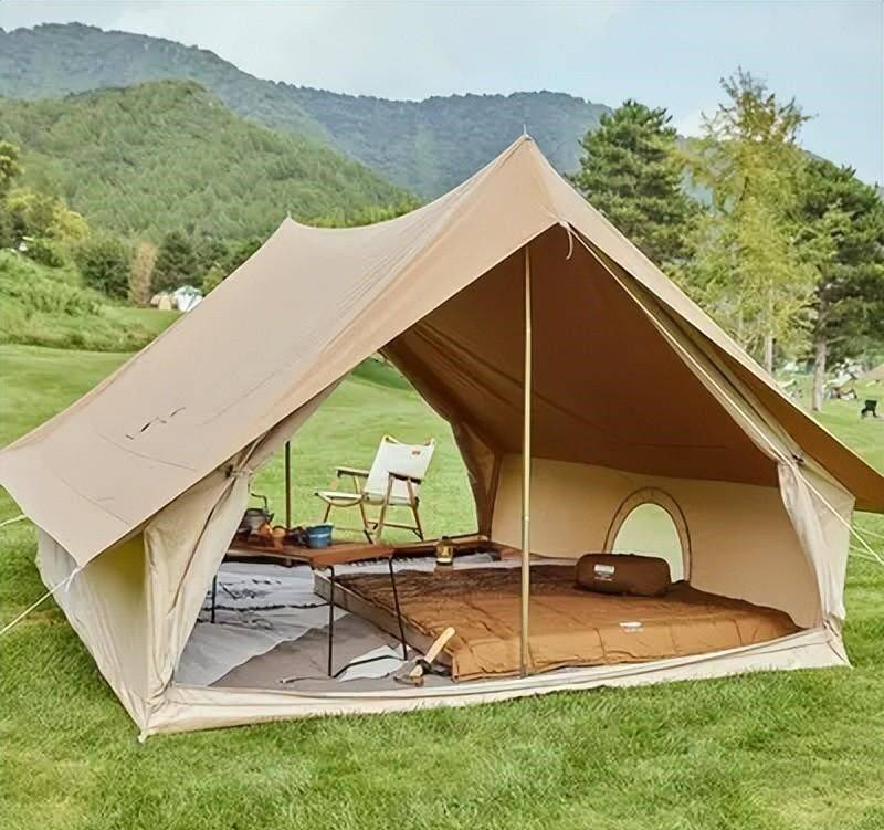 也被称为钟形帐篷(Bell Tent),中间由一根中心杆撑起帐篷,另一根杆支撑着门口,防风绳将帆布墙向外延伸,形成一个稳定结构,宽敞、坚固、强悍,像KingCamp的可汗帐篷,就是这样一款能适应四季气候的蒙古包帐篷。