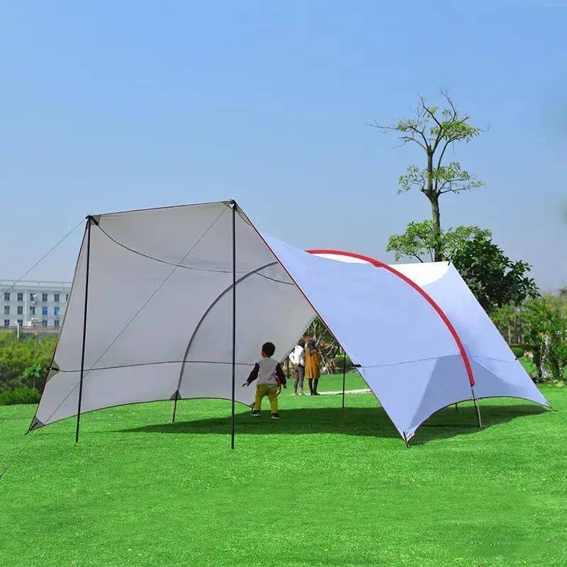 主要用处是遮挡阳光,多用在夏季露营的时候。比如炎炎夏日在海边玩耍,搭一个遮阳帐篷能帮你抵御强烈阳光的照射,遇到雨雪天气也可搭建在露营帐篷的上方。遮阳帐篷种类很多,比如天幕、车边帐(以车为载体进行搭建)等都属于遮阳帐篷。