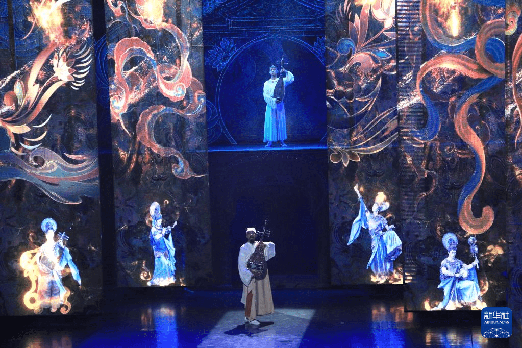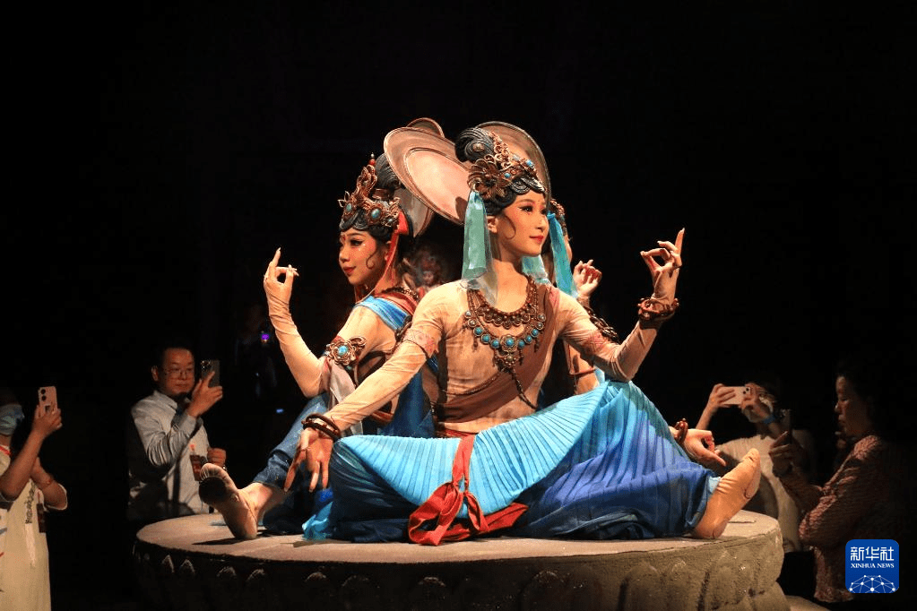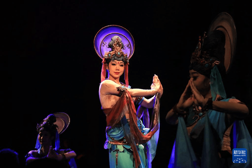 6月15日晚,大型洞窟式沉浸体验剧《乐动敦煌》在甘肃省敦煌市首演。
