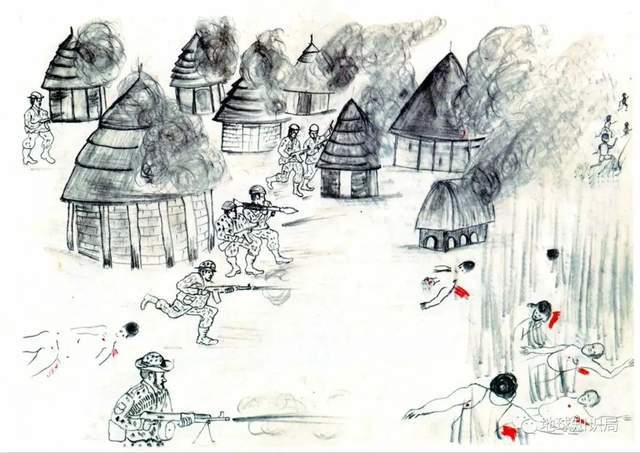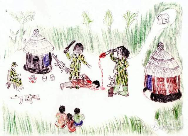 (描绘圣灵抵抗军袭击村庄的儿童画 图:壹图网)▼