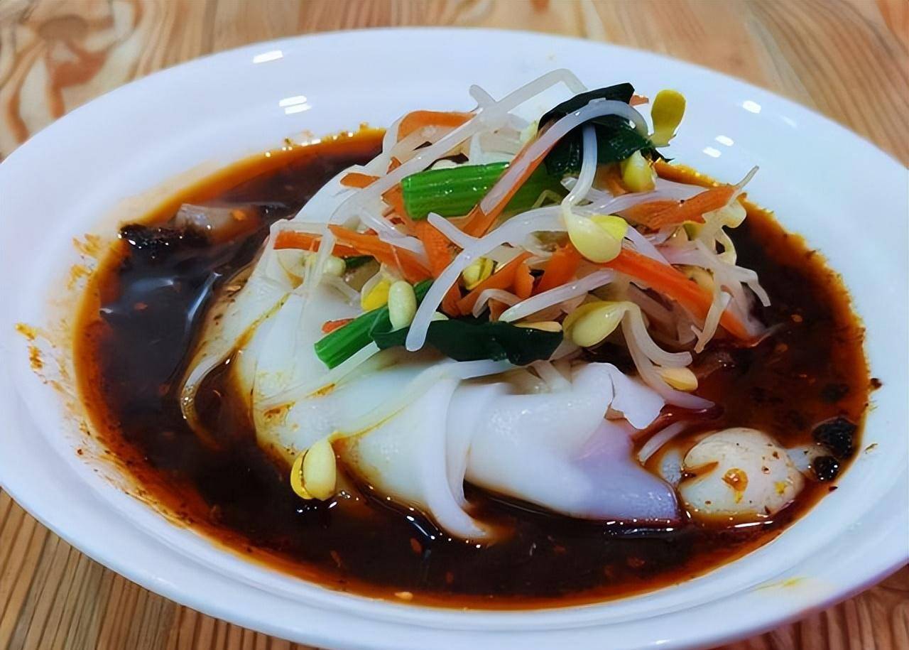 既然来到汉中,那面皮肯定是必不可少的,汉中面皮,是汉中地区的传统面食,制作原料为面粉和水。它的特点是面皮薄如纸,口感筋道有嚼劲,加上汉中特有的浓郁酱汁和辣椒油,味道十分美味。汉中面皮的制作技艺独特,需要经过多道工序,如揉面、发面、擀面等,制作出来的面皮非常精细,营养丰富,是汉中市民早餐和夜宵的首选。