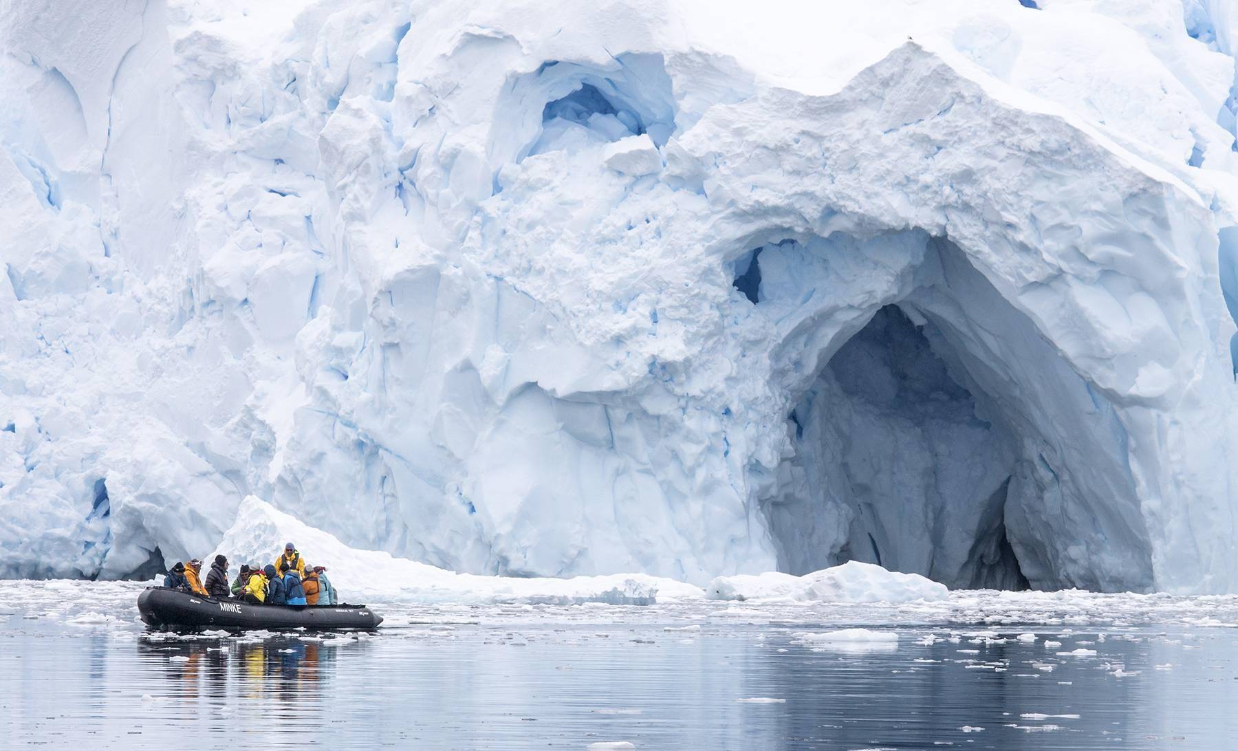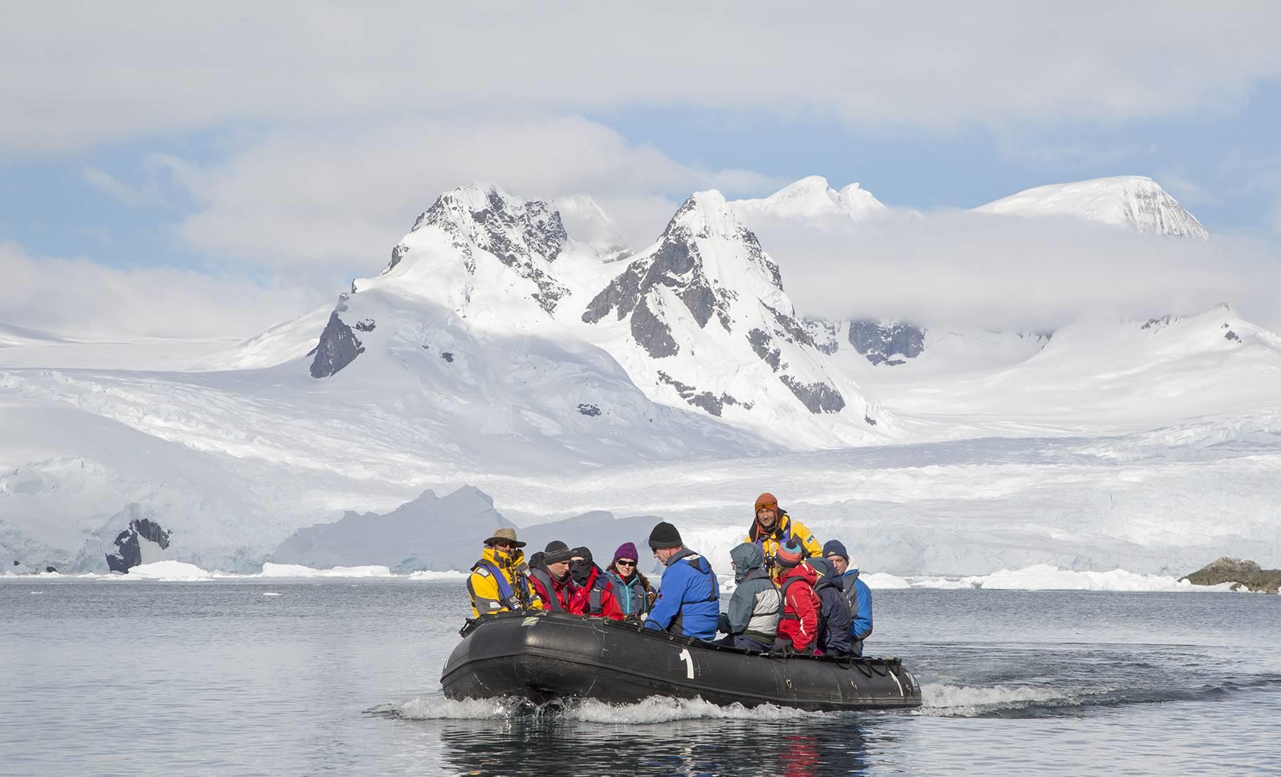 在冰雪覆盖的峡湾和壮观的冰山间巡游,这里还栖息着数目众多的海鸟、企鹅、海豹和鲸鱼。