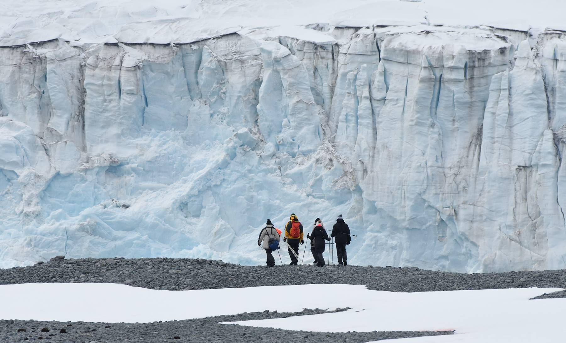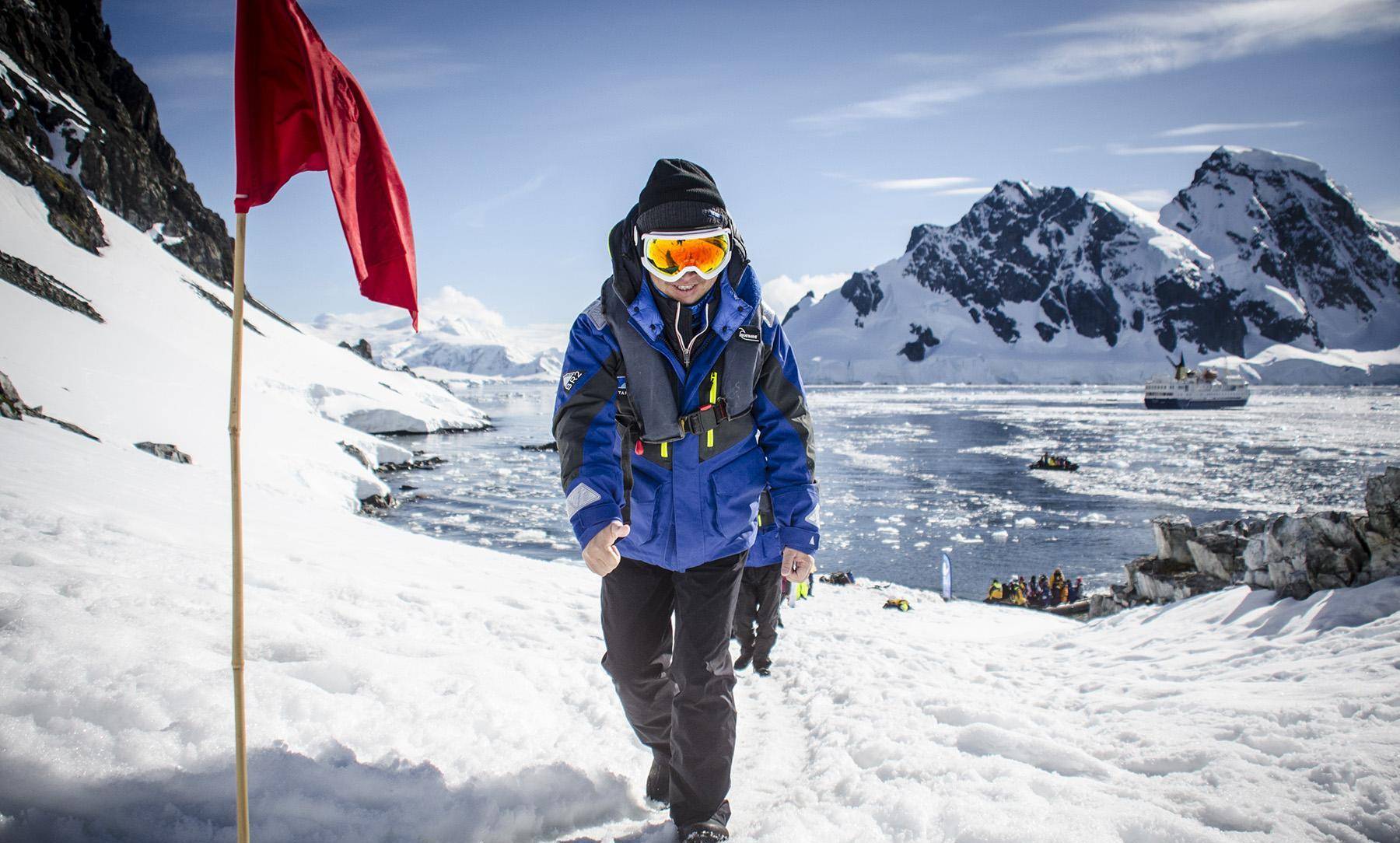 走出舱门的一瞬间,您将感受到沁人心脾的南极空气。随后步行约 2 公里(1.25 英里),经过智利费雷站和俄罗斯别林斯高晋科考站到达海岸,通过橡皮艇登上我们的精品探险邮轮。