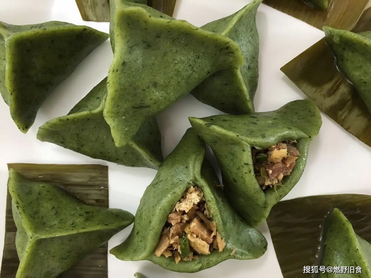 艾叶米果是用煮过的新鲜艾叶配糯米粉揉制外皮,包馅后蒸制而成。
