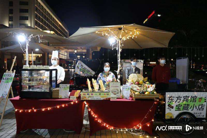 现场,除了有东方宾馆的“宝藏小店”热卖着东方永庆面、叉烧酥、皮蛋酥、鸡仔饼等招牌小食之外,还有“青蛙杂货铺”“书法扇”“小负婆的摊”“楼下碗仔翅”“相思街咖啡&石膏娃娃”“妙妙喵de奇妙世界”等品类繁多的商品食品。