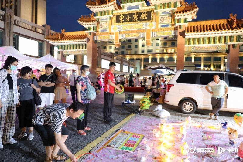 投壶、套圈、吃雪糕、喝鸡尾酒、挑水晶、买玩具……市民游客流连忘返。一位带着孩子的父亲表示,自己小时候经常会来东方宾馆打卡,这次听闻举办车尾厢集市,就特意过来看看也让孩子们感受一下自己幼时成长的地方。小朋友则表示,现场的小吃和雪糕好好吃,游戏也好玩。