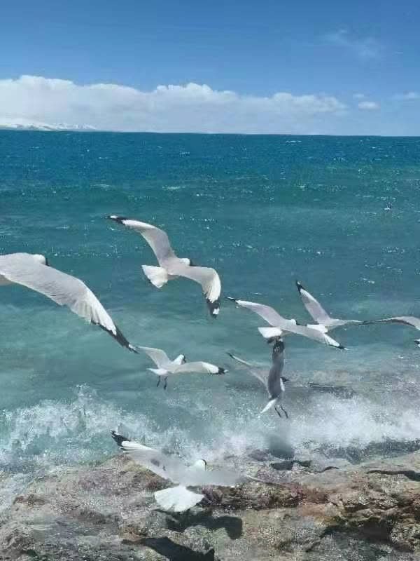 蔚蓝的天空,洁白的云朵,碧绿的湖水,飘扬的经幡……我的心飞向大美西藏。