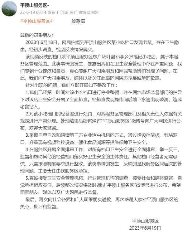 对此,@平顶山服务区- 致歉:视频反映情况属实,在此向广大司乘朋友、媒体以及关注此事的网民表示最诚挚的歉意。