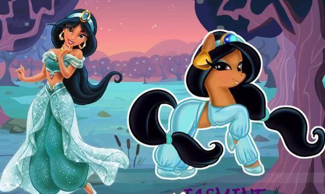 茉莉公主是迪士尼公主中最聪明和有主见的公主,她最初登场于《阿拉丁与神灯》这部作品中,是苏丹王的爱女,叛逆的个性让她不想一般公主那样喜欢呆在皇室宫殿里,而是追求微服私访,体验民情的生活。成为小马后的茉莉公主,保留了原本的棕色皮肤,一头黑色大波浪鬓毛特别引人注目,配上这双会放电的迷人双眼,完全成了一只妩媚至极的小马宝莉。