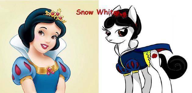 白雪公主是迪士尼最著名的公主,她被后母虐待后,逃入森林和七个小矮人一起生活的故事,早已传遍了整个世界,而温柔善良的甜美模样一直是白雪公主的标志性模样。变成小马宝莉后的白雪公主,是一只浑身雪白的小马,虽然穿着深蓝色萝莉公主裙,眼神却不再像从前那样温柔,而是充满了傲慢,这样的白雪公主有种拒人于千里之外的感觉,不知原本深爱她的王子还敢骑上去吗?