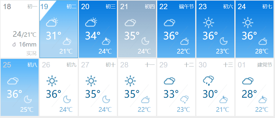 端午节假期省内天气预测(以实际天气为准)