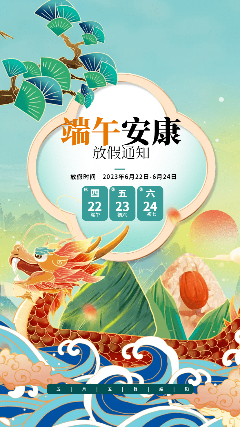 2023年端午节放假时间为:6月22日(星期四)至6月24日(星期六),共3天。