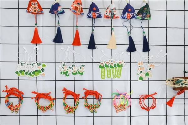 “端午安康”“驱邪祈福”“粽乐乐”“粽头彩”......展厅现场,旅客们围坐在桌前,拿起祝福卡片,带起五彩绳手链,提前感受着属于端午节的热闹与欢乐。