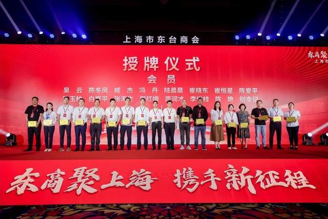 6月17日,上海市东台商会成立大会在上海星河湾酒店隆重举行。中共东台市委书记商建明、东台市人大常委会副主任、工商联主席焦小平、东台市人民政府副市长崔恒荣,家乡东台走出去的黄永垠将军、赵天民将军、韩林枝将军、夏吉女士,上海市民政局社团管理处二级调研员刘占一、上海市政府合作交流办直属机关党委副书记宋建华,江苏省政府驻上海办事处二级巡视员胡荣、盐城市政府驻上海联络处副主任余云娟,上海政法学院社会治理研究院院长章友德、解放军陆军大校储达生、央媒评论员、战略营销专家袁清、上海国际医学园区集团纪委书记薛明、松江区洞泾镇镇长李子、上海市第一人民医院骨科主任蔡郑东、上海龙华医院呼吸科主任张惠勇、上海江苏商会副会长、秘书长陈伟、上海江苏盐城商会党委书记刘加亮,南空人才信息中心原主任许玉霞、盐城市政府驻上海联络处原主任顾向阳、上海海事法院原副巡视员刘世云、原南京军区驻上海铁路军代表钱亚军、上海市杨浦区检察院原检察长徐进、上海市民政局综合处原处长茅正贤、原海关总署驻上海办事处特派员项金章、上海国防教育进修学院原院长方敏、普陀区武装部原部长朱生存、江苏省政府驻上海办事处交通处原处长贾益群、杨浦区监察局原副局长周殷民,上海市东台商会会长范文兵以及在沪东台籍企业家和杰出乡贤代表等400多名嘉宾参加活动。