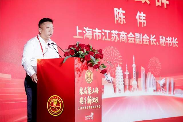 最后,东台市委书记商建明发表热情洋溢的讲话。商书记代表东台市委、市政府向上海市东台商会的成立表示祝贺。他说,东台与上海地缘相近、人缘相亲,在上海老西门外“东台路”,述说了两地交往历史之久远;在东台沿海烙下了上海知青燃烧“敢叫荒滩变绿洲”的激情岁月。如今,东台与上海交流互动更加密切,上海电气、富乐华、贺鸿、东富龙等120多家沪资企业落地东台;五万多东台人常年在上海工作生活,一大批东台籍企业家和杰出乡贤活跃在产业、科技、人文等领域,取得了卓著成就,令家乡人引以为傲。进入新的发展阶段后,对沪合作的空间更加广阔,上海市东台商会成立必将成为在外乡友和企业家增进乡情、抱团发展的桥梁和纽带,实现优势互补、共同发展。