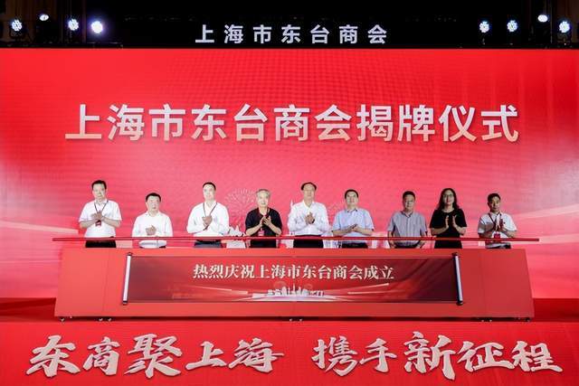 黄永垠、赵天民、韩林枝、刘占一、宋建华、余云娟、焦小平、刘加亮、范文兵共同为上海市东台商会成立揭牌。