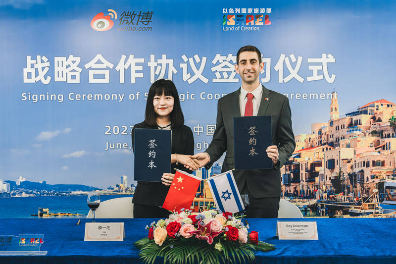 6月13日,以色列国家旅游部与新浪微博在上海正式签署战略合作协议。在此战略合作协议下,双方将共同致力于以色列旅游的宣传和推广,开展全方位合作,包括近期以色列国家旅游部与新浪微博再次发起的#行走以色列的话题活动以及长期的内容合作推广。这是疫情后以色列国家旅游部与中国媒体平台签署战略合作协议的首次尝试。双方希望通过长期的深度合作宣传以色列独具魅力的旅游资源,扩大以色列旅游在中国的品牌知名度,从而推动中国旅客赴以色列旅游的长期增长。此次战略合作协议的签署是以色列国家旅游部在中国宣传推广工作的重要布局。